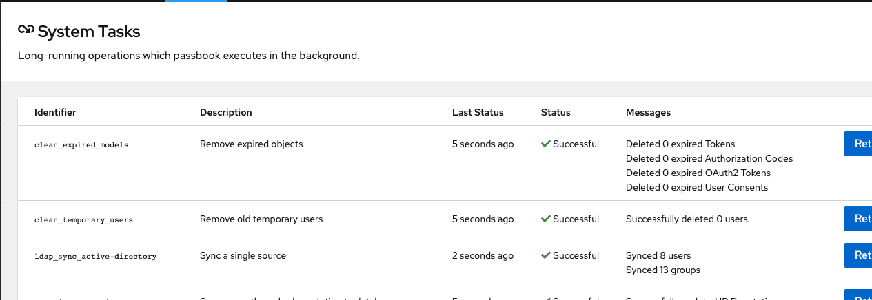 Click Finish to save the LDAP Source. An LDAP synchronization will begin in the background. Once completed, you can view the summary by navigating to Dashboards > System Tasks: